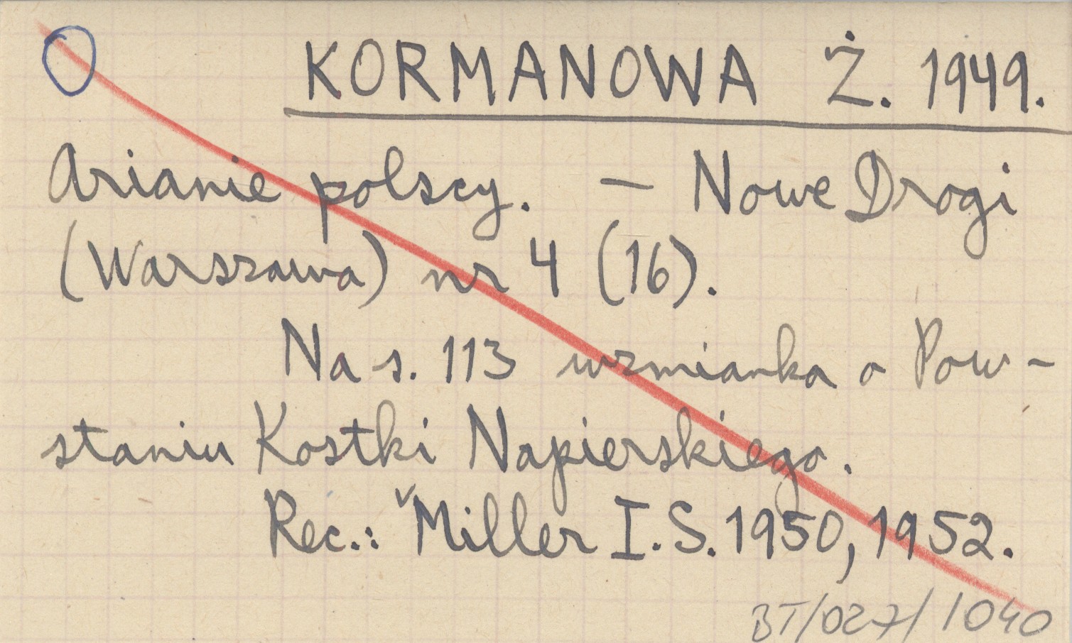 Nowe Drogi (Warszawa) , Nr 4 (16). Na s. 113 wzmianka o Powstaniu Kostki Napierskiego. REC: MILLER I. S. 1950, 1952