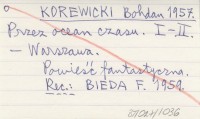 KOREWICKI Bohdan 1957 Przez ocean czasu. I-II.