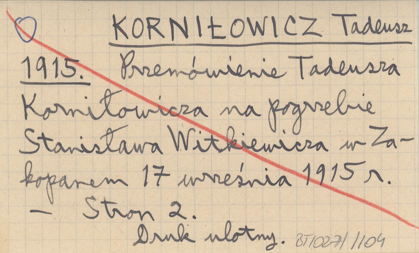 KORNIŁOWICZ Tadeusz 1915 Przemówienie Tadeusza Korniłowicza na pogrzebie Stanisława Witkiewicza w Zakopanem 17 września 1915 r.