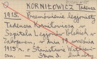 KORNIŁOWICZ Tadeusz 1915 Przemówienie legjonisty Tadeusza Korniłowicza w Szpitalu Legjonów Polskich w Zakopanem, w dniu 19 września 1915 r. o Stanisławie Witkiewiczu.