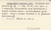 KORNIŁOWICZ Tadeusz 1916 (?) Stanisław Witkiewicz.