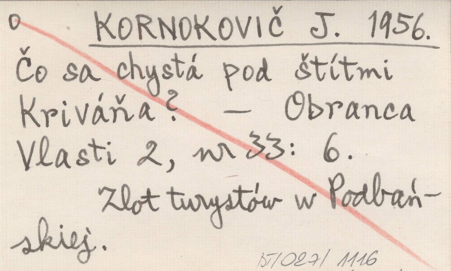 KORNOKOVIČ J. 1956 Čo sa chystá pod štítmi Kriváňa?
