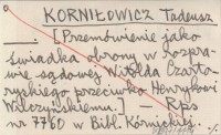 KORNIŁOWICZ Tadeusz [Przemówienie jako świadka obrony w rozprawie sądowej Witolda Czartoryskiego przeciwko Henrykowi Wilczyńskiemu.].