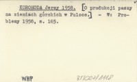 KOROHODA Jerzy 1958 [O produkcji paszy na ziemiach górskich w Polsce.].
