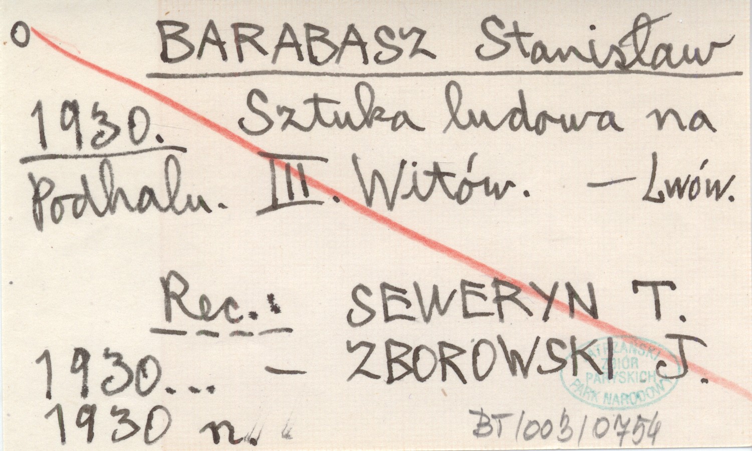 Lwów , REC: SEWERYN T. 1930... ; ZBOROWSKI J. 1930 n ;