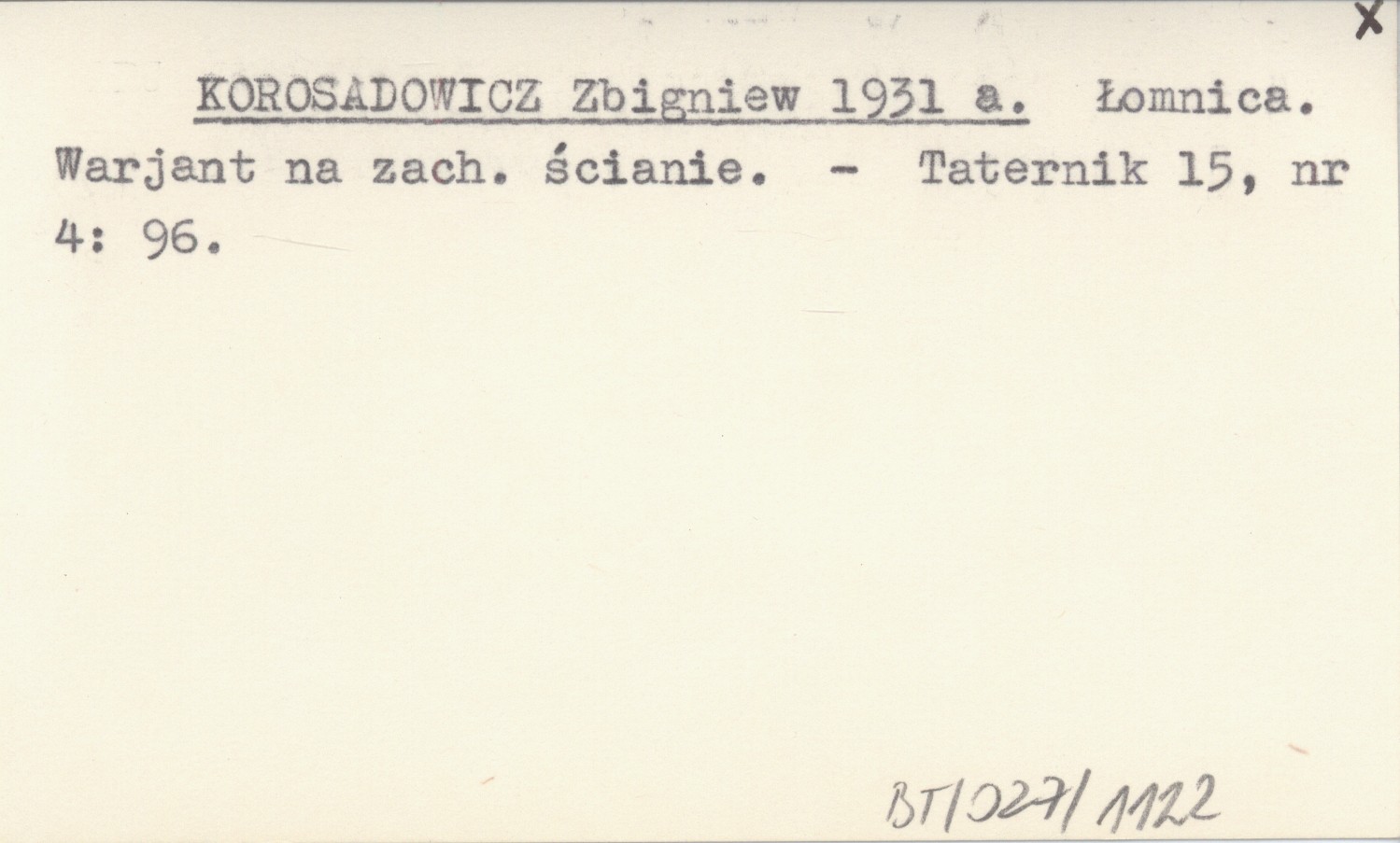KOROSADOWICZ Zbigniew 1931 a Łomnica. Warjant na zach. ścianie.