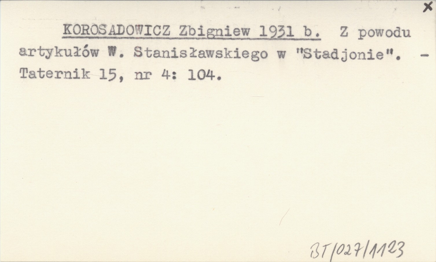 KOROSADOWICZ Zbigniew 1931 b Z powodu artykułów W. Stanisławskiego w "Stadjonie".