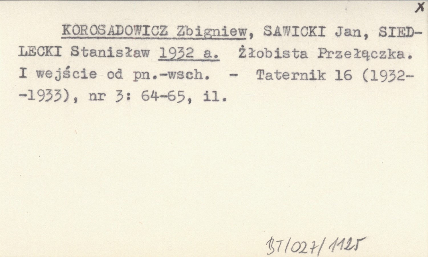 KOROSADOWICZ Zbigniew SAWICKI, Jan. ; SIEDLECKI, Stanisław. ; 1932 a Żłobista Przełączka. I wejście od pn.-wsch.