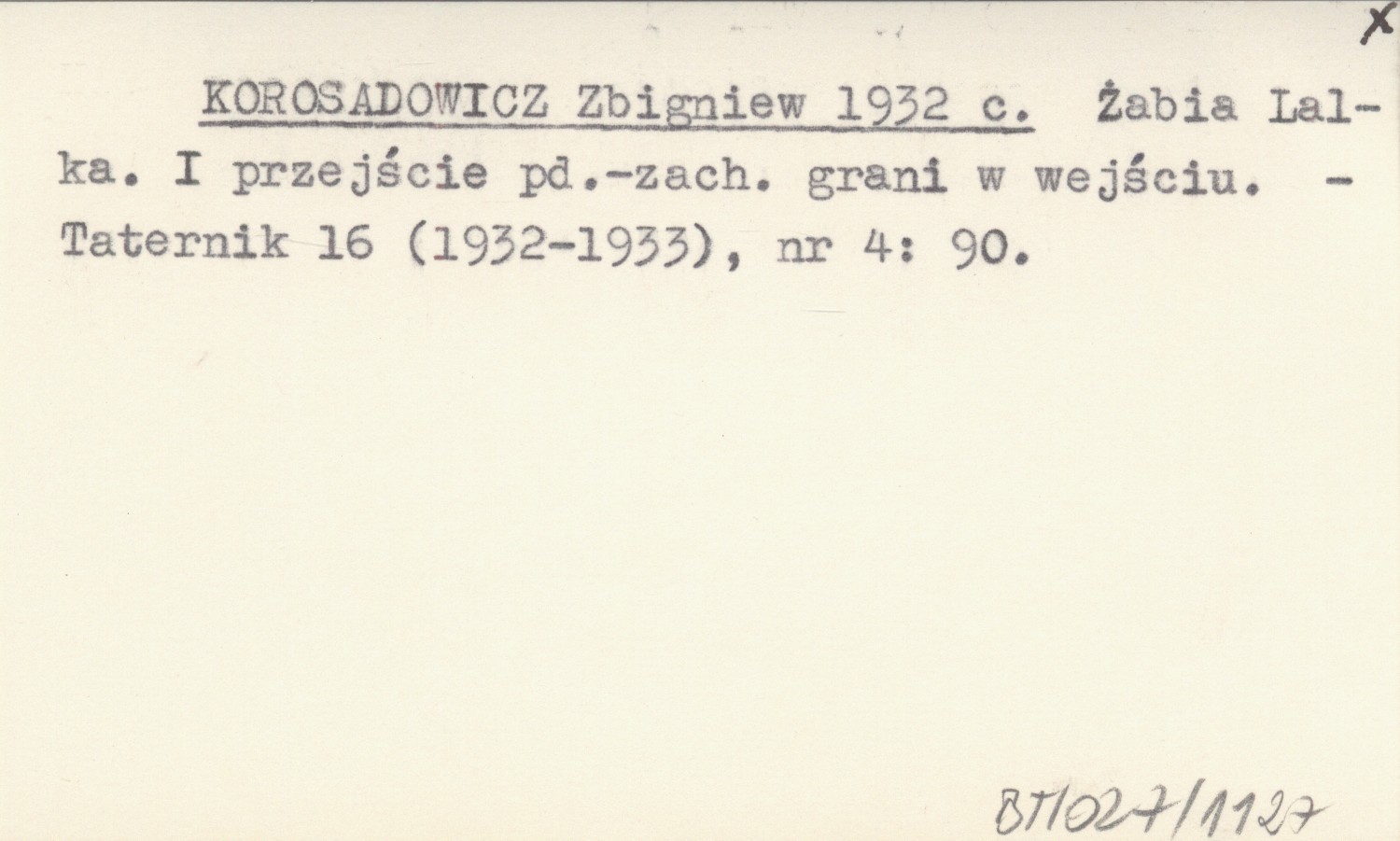 KOROSADOWICZ Zbigniew 1932 c Żabia Lalka. I przejście pd.-zach. grani w wejściu.