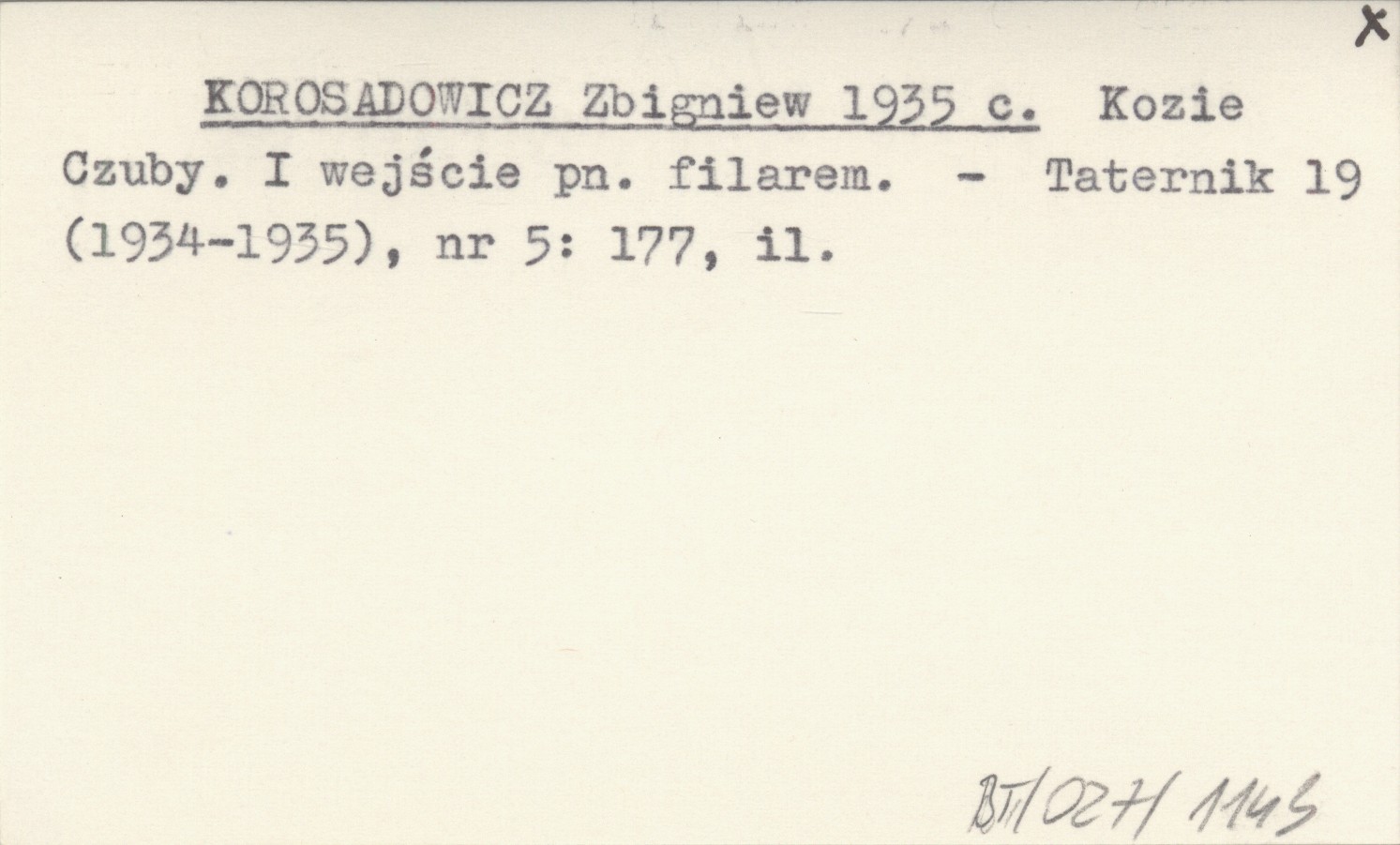 KOROSADOWICZ Zbigniew 1935 c Kozie Czuby. I wejście pn. filarem.