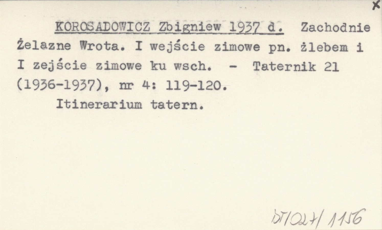 KOROSADOWICZ Zbigniew 1937 d Zachodnie Żelazne Wrota. I wejście zimowe pn. żlebem i I zejście zimowe ku wsch.