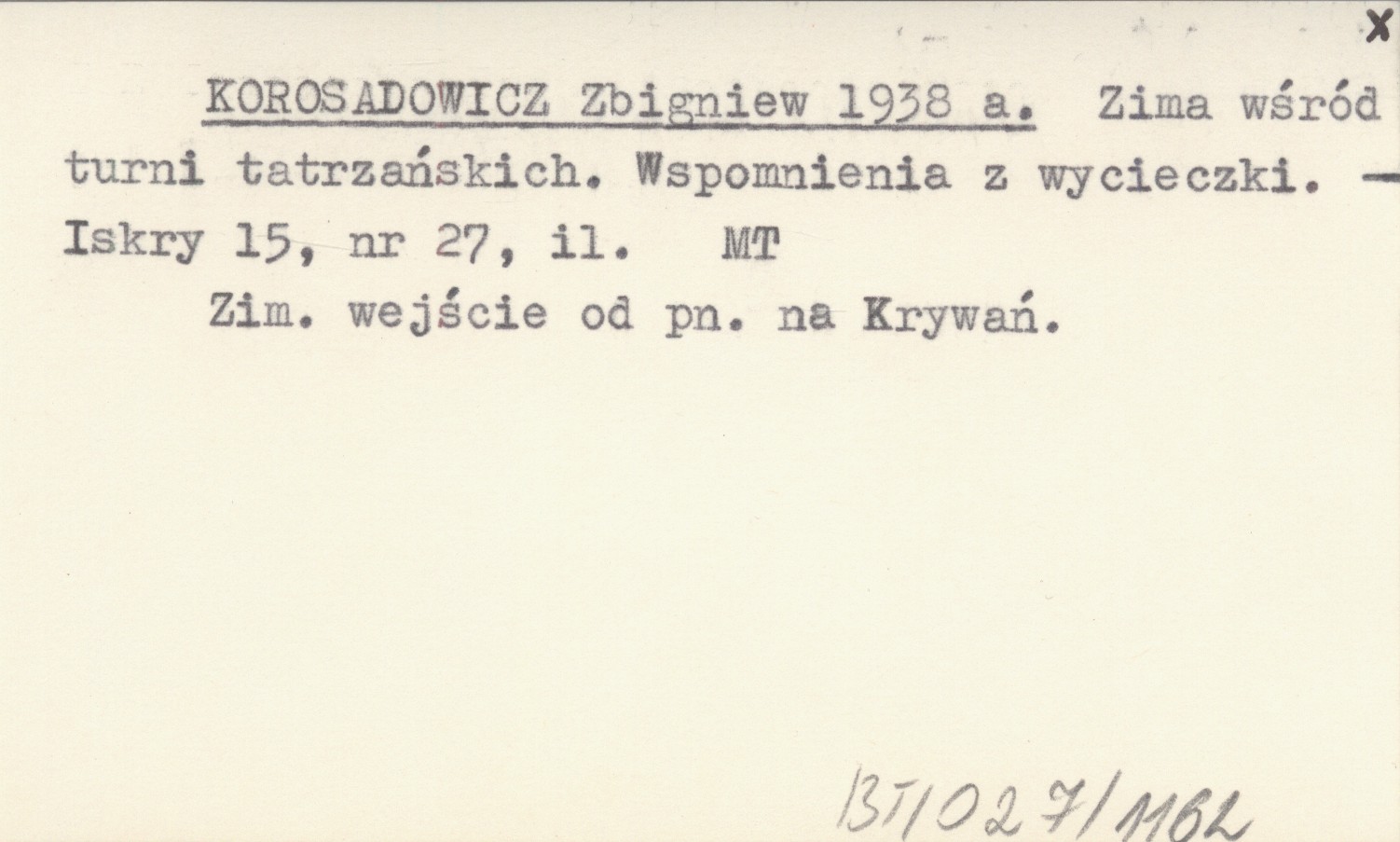 KOROSADOWICZ Zbigniew 1938 a Zima wśród turni tatrzańskich. Wspomnienia z wycieczki.