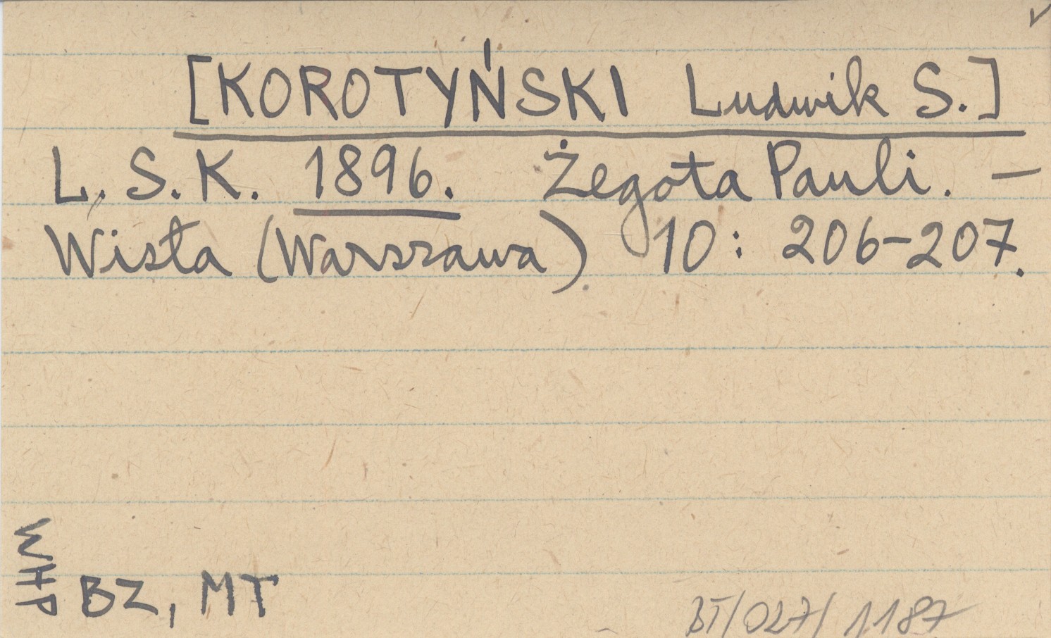 L. S. K. [KOROTYŃSKI Ludwik S.] 1896 Żegota Pauli.