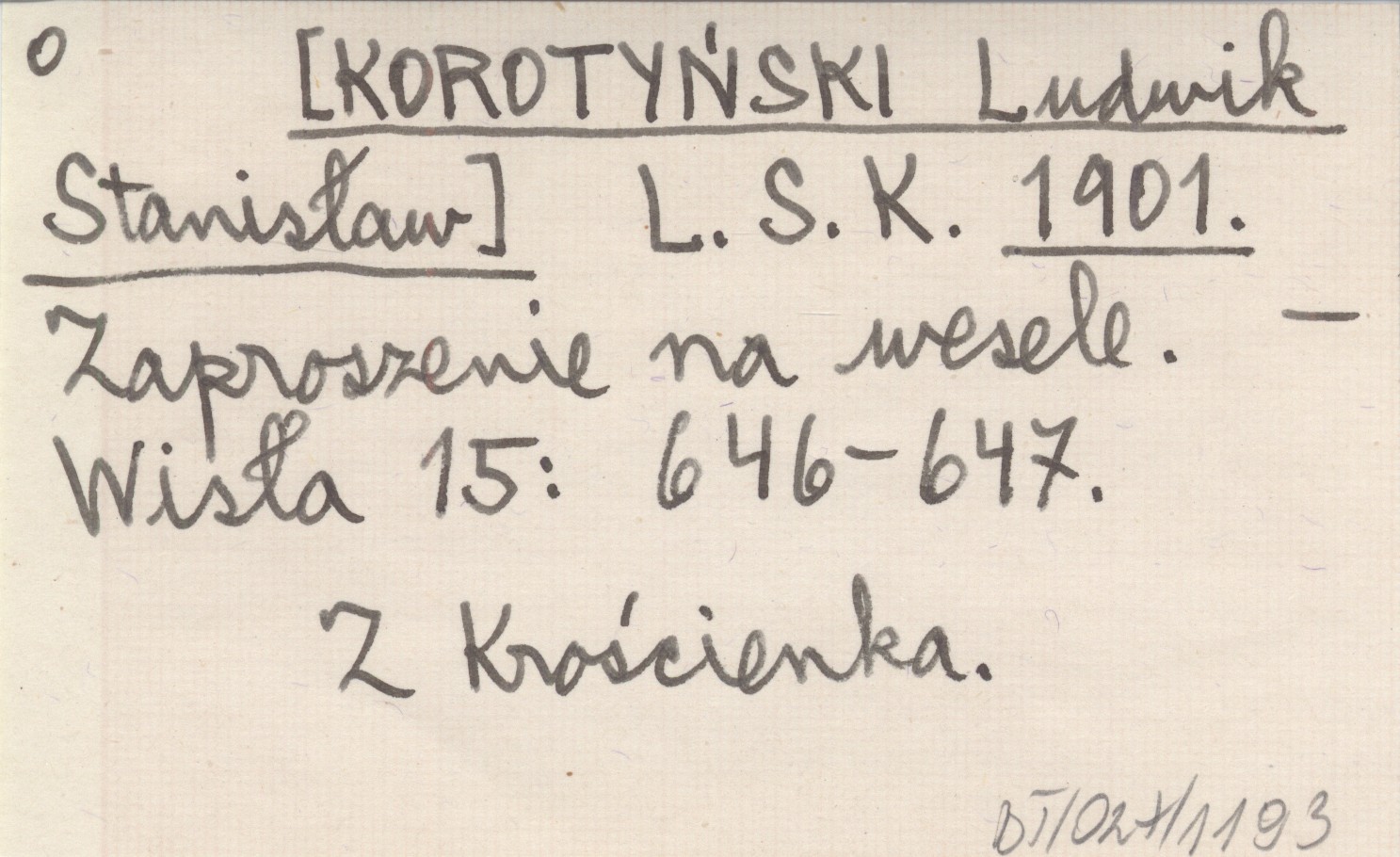 L. S. K. [KOROTYŃSKI Ludwik Stanisław] 1901 Zaproszenie na wesele.