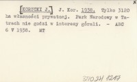J. Kor. [KORYCKI J.] 1938 Tylko 3120 ha własności prywatnej. Park Narodowy w Tatrach nie godzi w interesy górali.