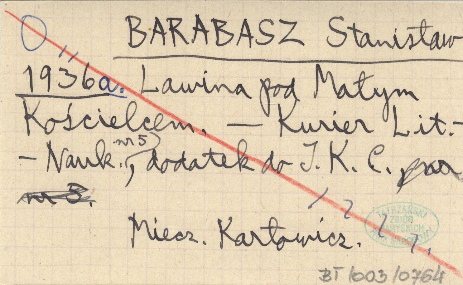 BARABASZ Stanisław 1936 a Lawina pod Małym Kościelcem.