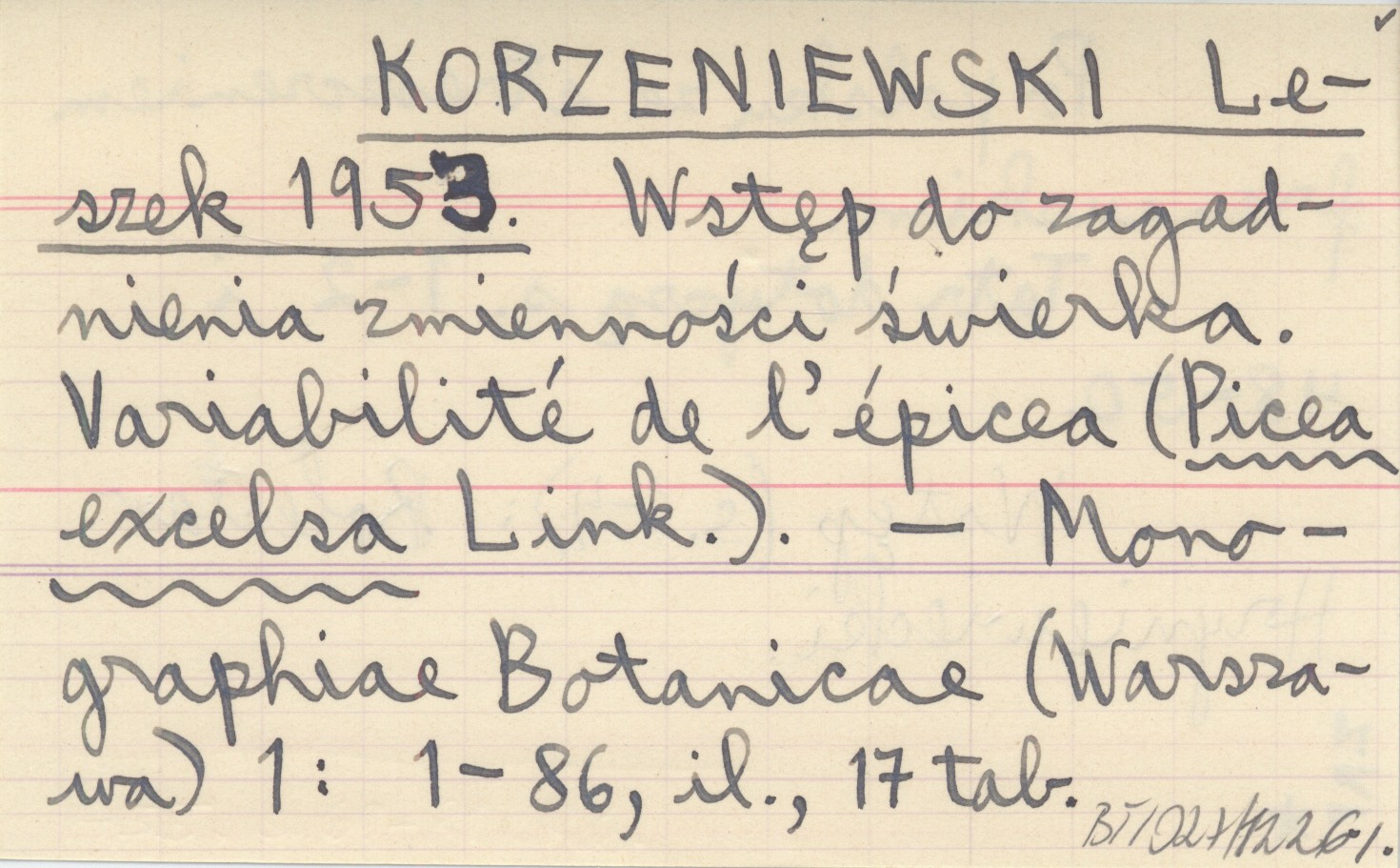 KORZENIEWSKI Leszek 1953 Wstęp do zagadnienia zmienności świerka. Variabilité de l'épicea (Picea excelsa Link.).