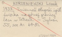 KORZENIEWSKI Leszek 1937 d Zmienność długości igieł świerka (Picea excelsa Link.) na górnej granicy lasu w Tatrach (Dolina Suchej Wody).