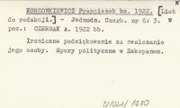 KORZONKIEWICZ Franciszek 1922 Jednodniówki p. Czerbaka.