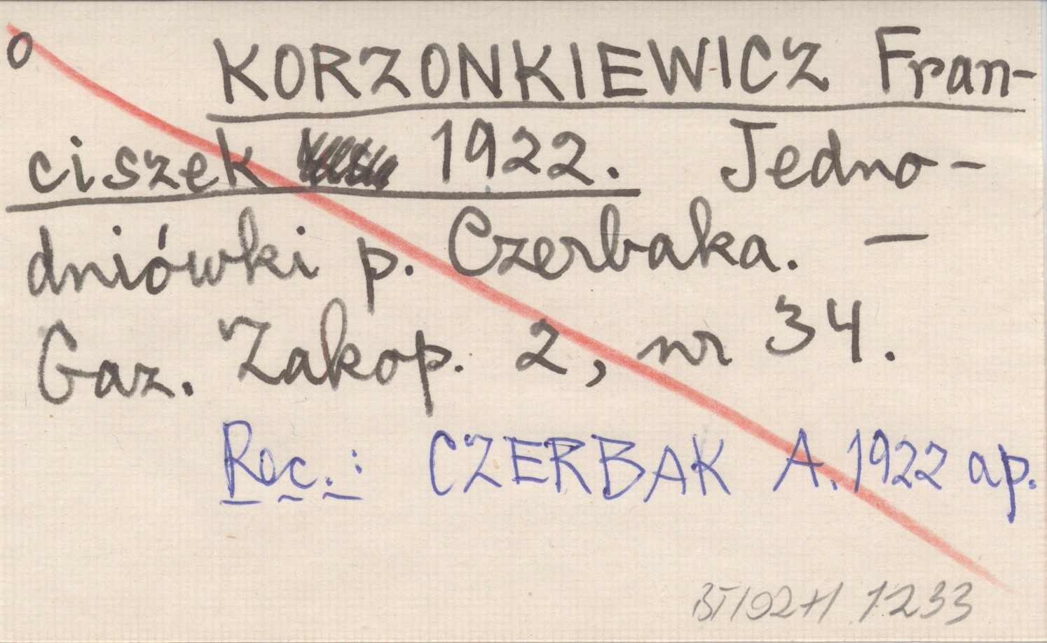 KORZONKIEWICZ Franciszek 1922 Jednodniówki p. Czerbaka.