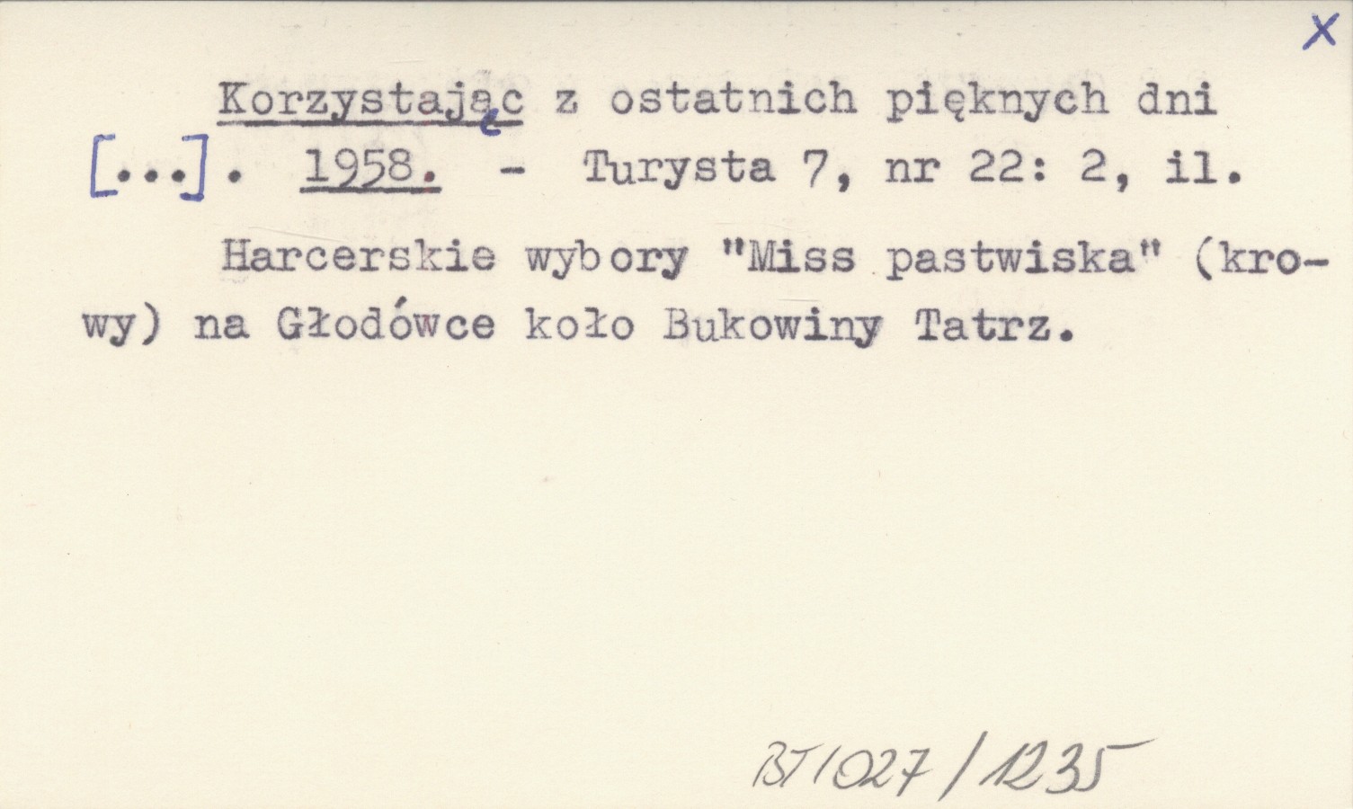 Turysta, 7, nr 22: 2, il. Harcerskie wybory "Miss pastwiska" (krowy) na Głodówce koło Bukowiny Tatrz.