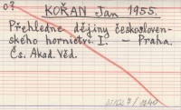 KOŘAN Jan 1955 Přehledne dějiny československého hornictví. I.