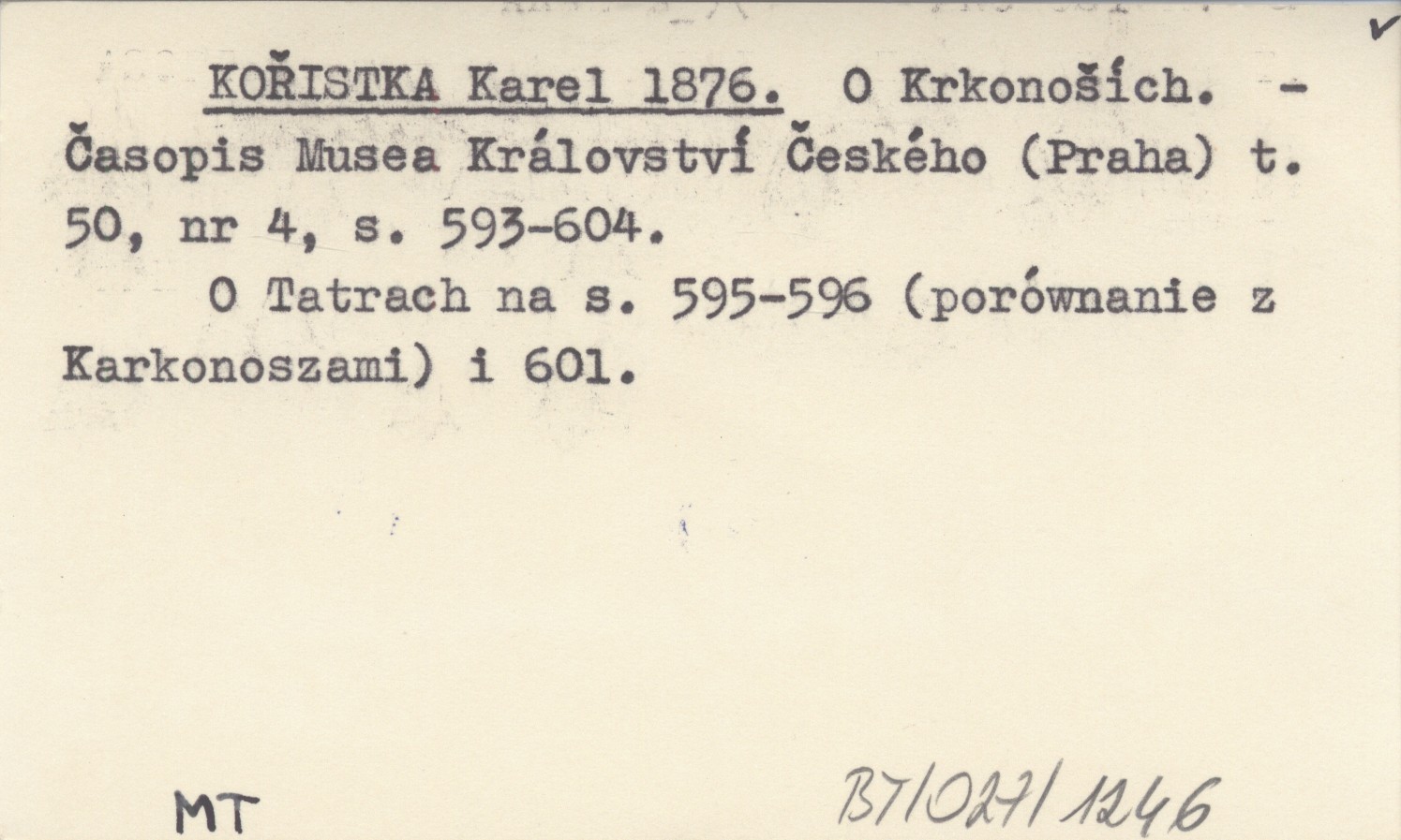 Časopis Musea Království Českého (Praha) , T. 50, nr 4: 593-604. O Tatrach na s. 595-596 (porównanie z Karkonoszami) i 601.