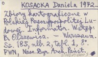 KOSACKA Daniela 1972... Zbiory kartograficzne w Polskiej Rzeczypospolitej Ludowej. Informator. Wstęp: B. Olszewicz.