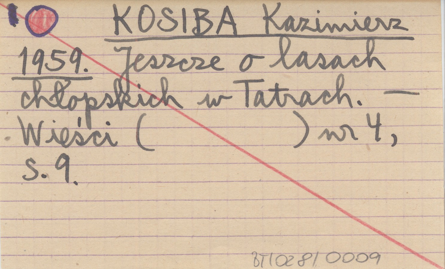 KOSIBA Kazimierz 1959 Jeszcze o lasach chłopskich w Tatrach.