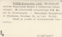 KOSIBA Aleksander 1955 Działalność naukowa Eugeniusza Romera w dziedzinie klimatologii. De l'activité scientifique d'E. Romer en climatologie.