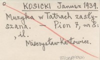 KOSICKI Janusz 1939 Muzyka w Tatrach zasłyszana.