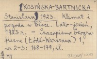 KOSIŃSKA-BARTNICKA Stanisława 1924 b Recenzje zbiorowe podręczników geografji Polski. Zagadnienia meteorologiczne i klimatologiczne.