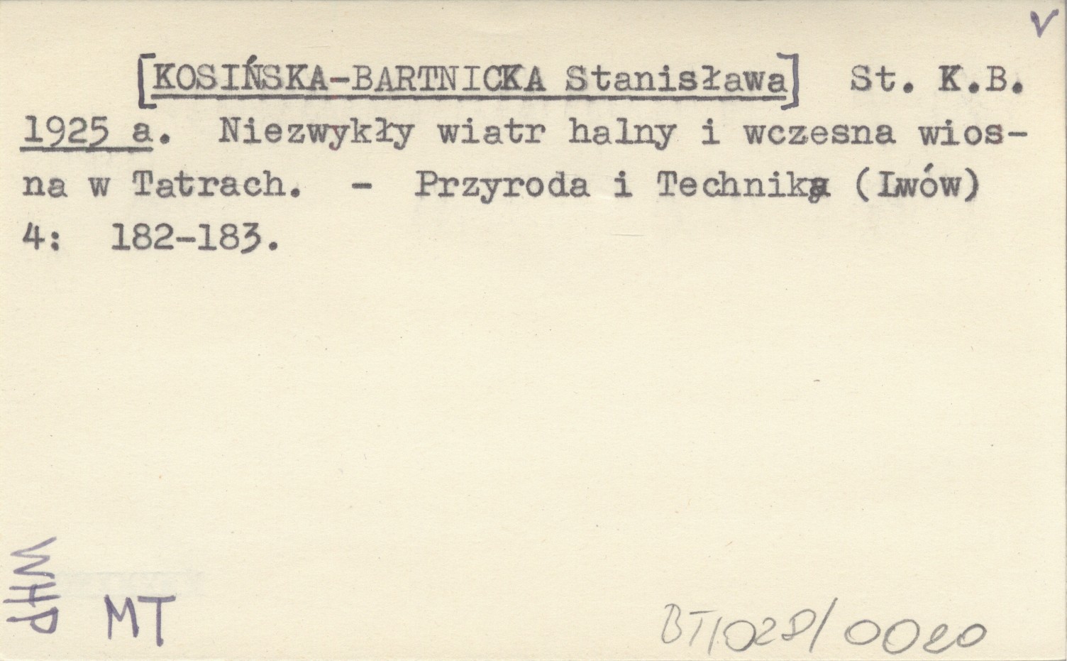 St. K.B. [KOSIŃSKA-BARTNICKA Stanisława] 1925 a Niezwykły wiatr halny i wczesna wiosna w Tatrach.