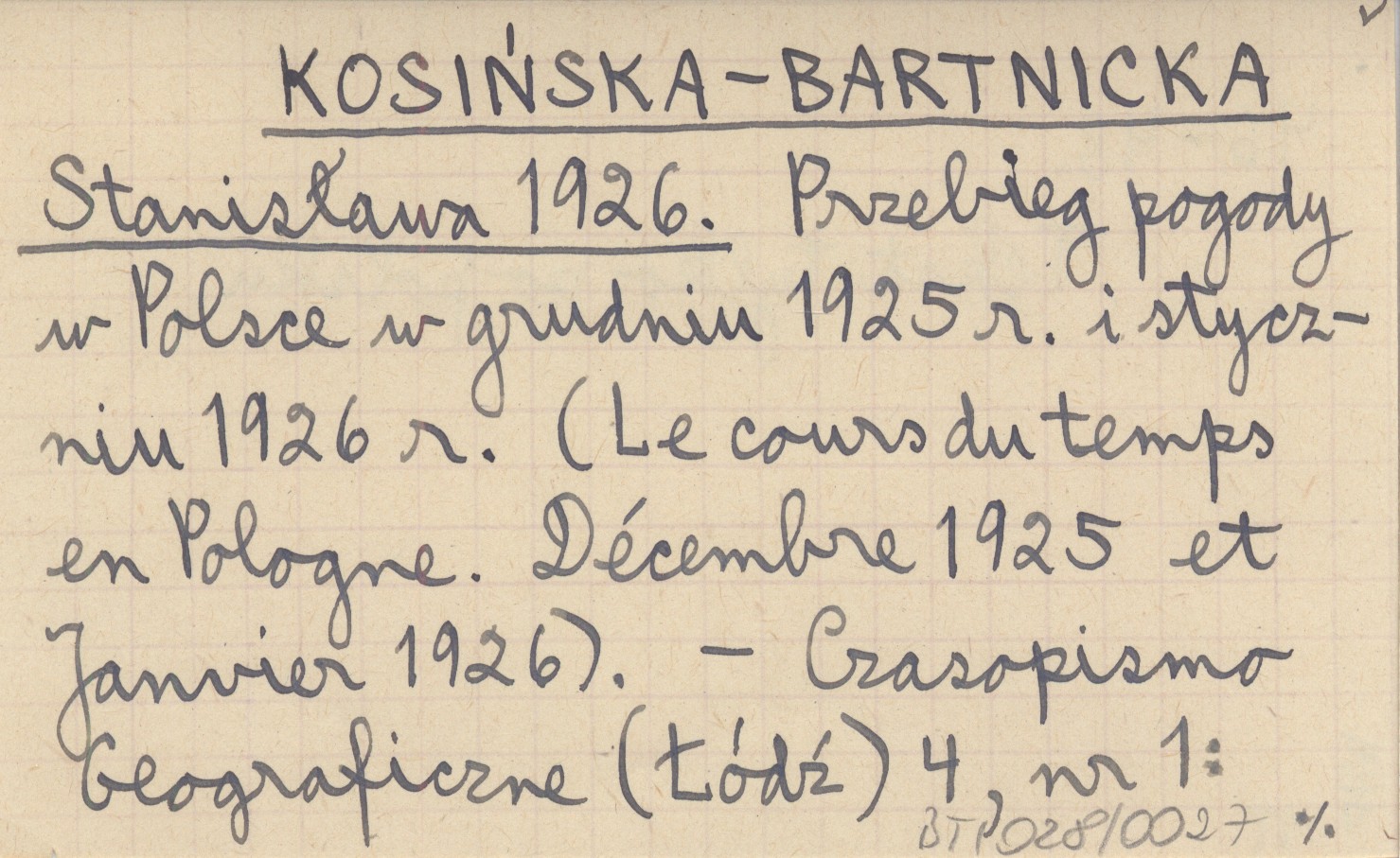 KOSIŃSKA-BARTNICKA Stanisława 1926 Przebieg pogody w Polsce w grudniu 1925 r. i styczniu 1926 r. (Le cours du temps en Pologne. Décembre 1925 et Janvier 1926).