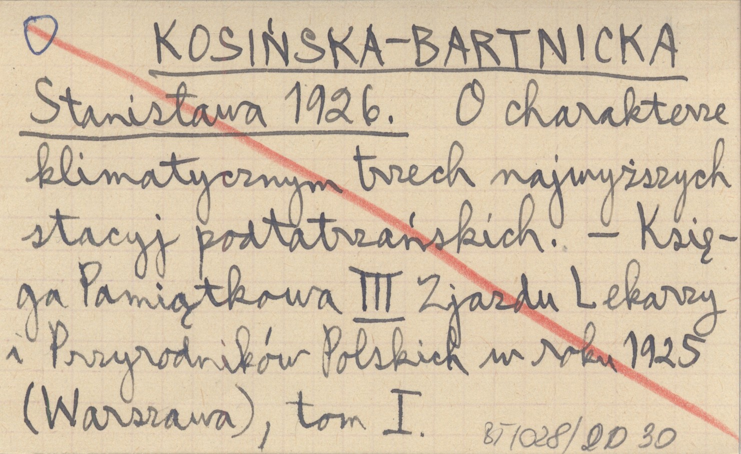 KOSIŃSKA-BARTNICKA Stanisława 1926 O charakterze klimatycznym trzech najwyższych stacyj podtatrzańskich.