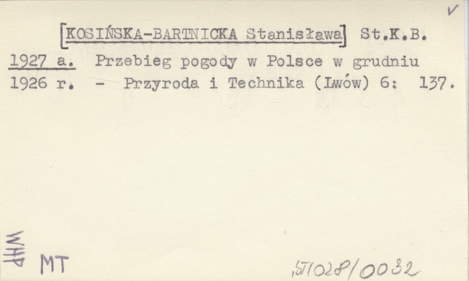 St. K.B. [KOSIŃSKA-BARTNICKA Stanisława] 1927 a Przebieg pogody w Polsce w grudniu 1926 r.