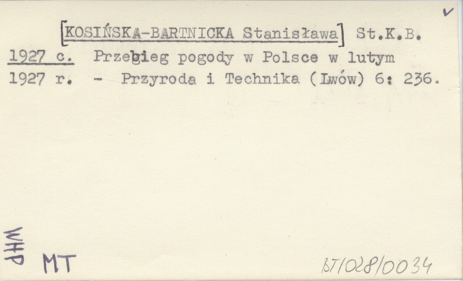 St. K.B. [KOSIŃSKA-BARTNICKA Stanisława] 1927 c Przebieg pogody w Polsce w lutym 1927 r.
