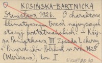 KOSIŃSKA-BARTNICKA Stanisława 1926 O charakterze klimatycznym trzech najwyższych stacyj podtatrzańskich.