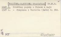 St.K.B. [KOSIŃSKA-BARTNICKA Stanisława] 1927 f Przebieg pogody w Polsce w maju 1927 r.