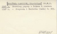 St.K.B. [KOSIŃSKA-BARTNICKA Stanisława] 1927 g Przebieg pogody w Polsce w czerwcu 1927 r.