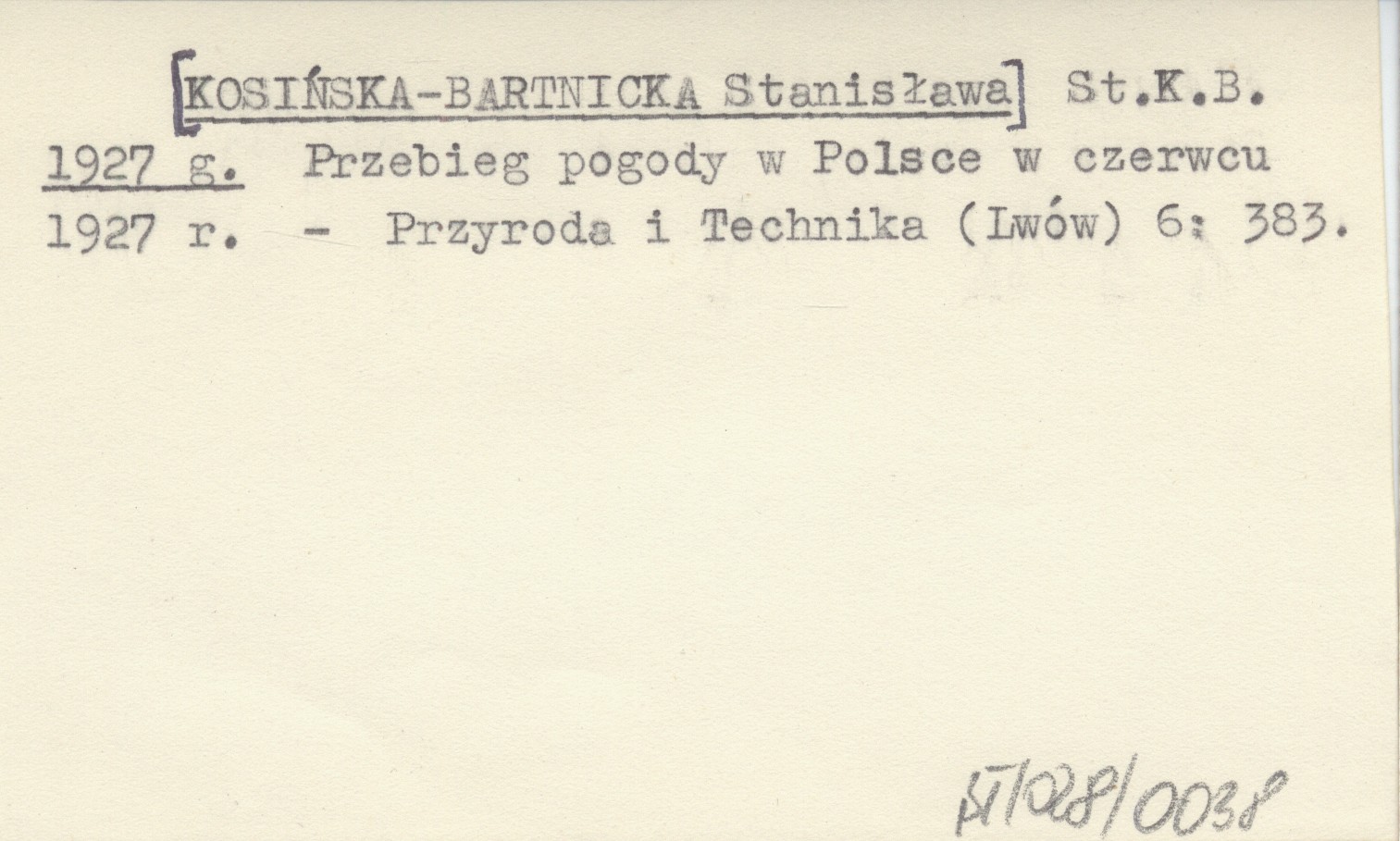 St.K.B. [KOSIŃSKA-BARTNICKA Stanisława] 1927 g Przebieg pogody w Polsce w czerwcu 1927 r.
