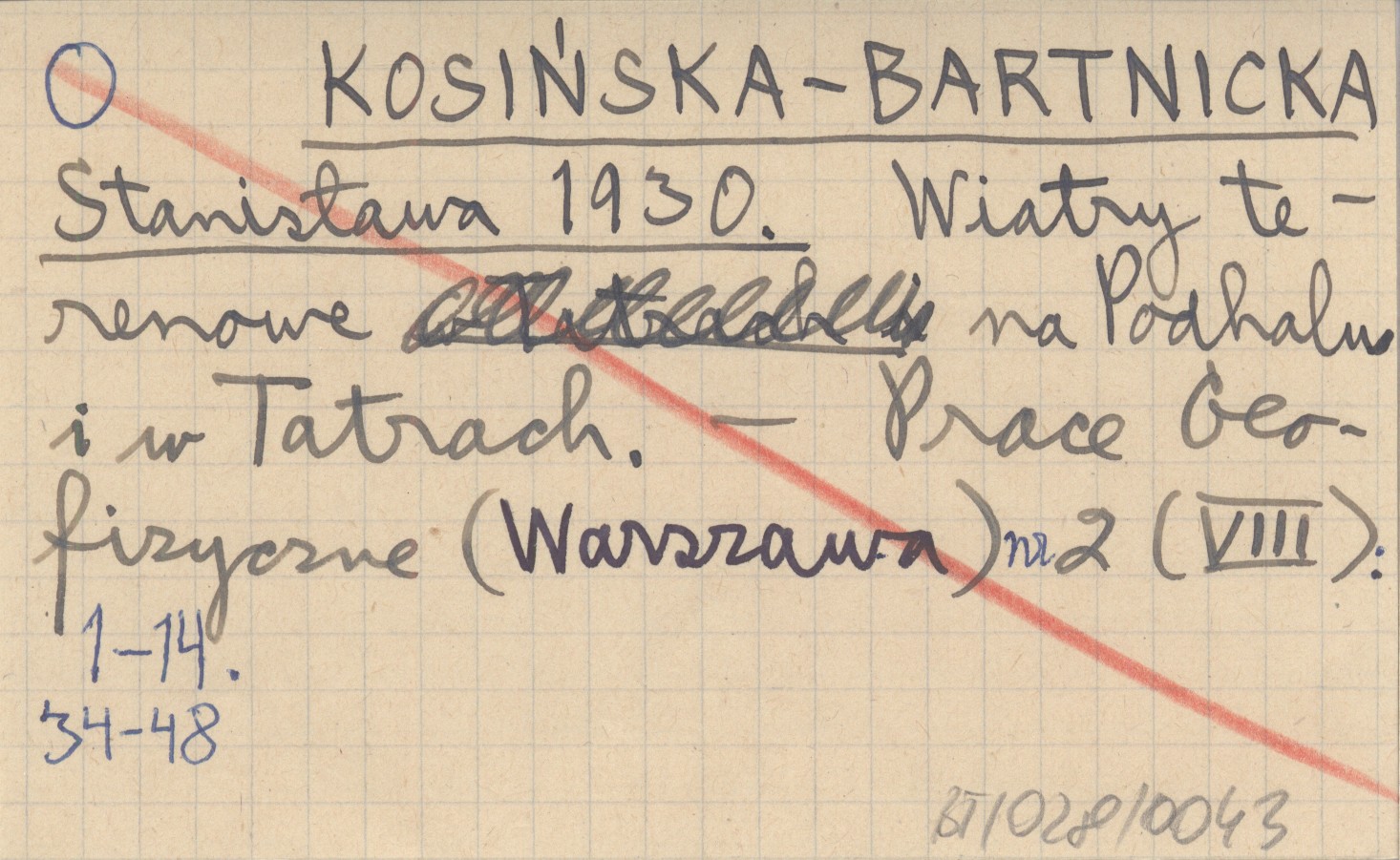 KOSIŃSKA-BARTNICKA Stanisława 1930 Wiatry terenowe na Podhalu i w Tatrach.