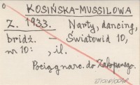 KOSIŃSKA-MUSSILOWA Z. 1933 Narty, dancing, bridż.