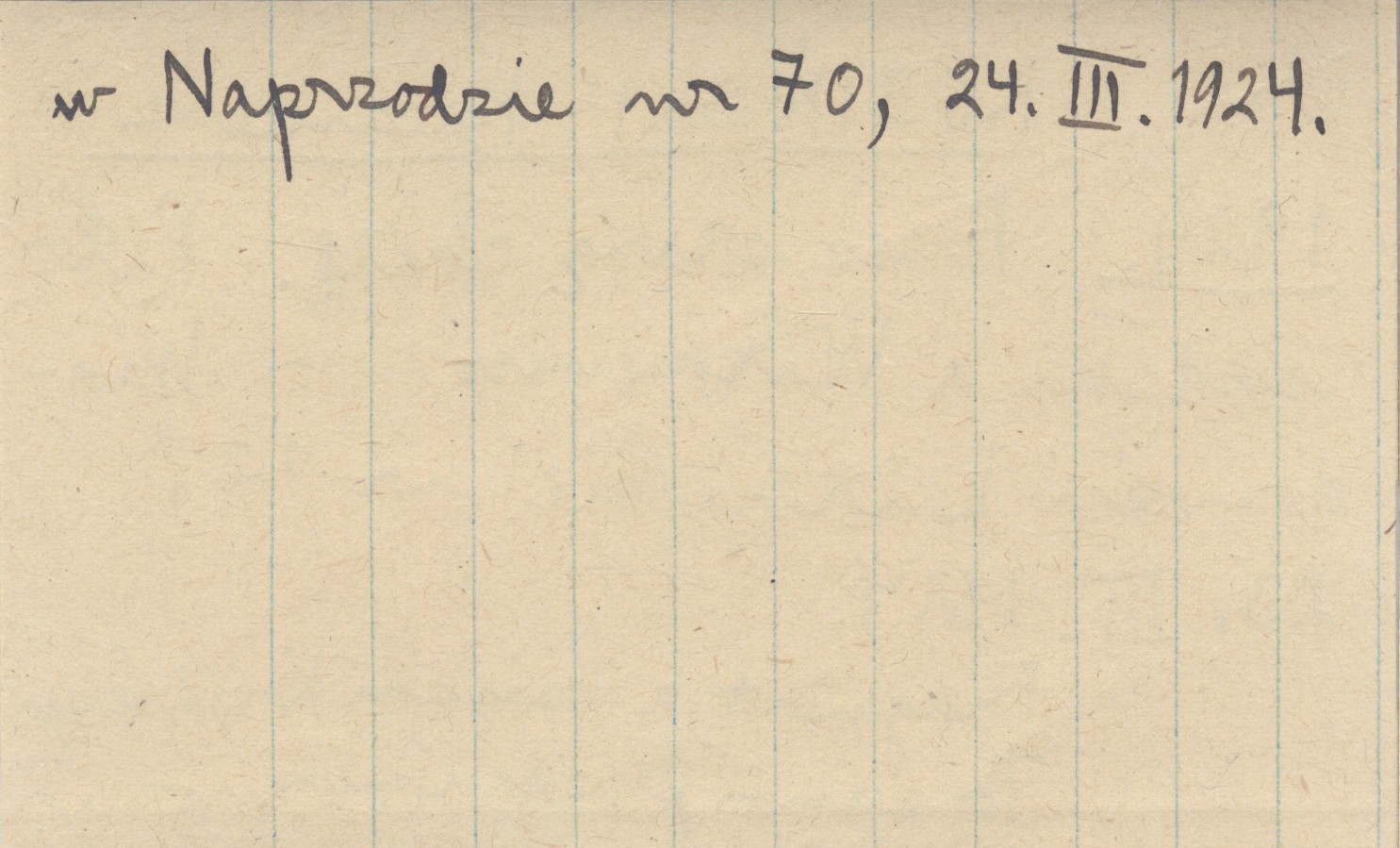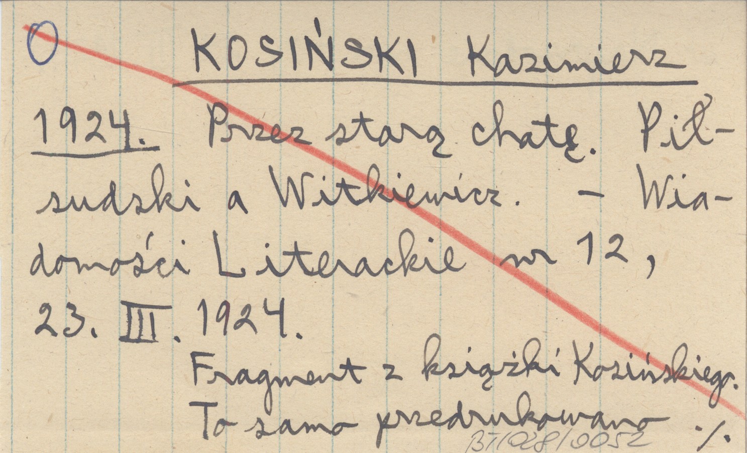 Wiadomości Literackie, Nr 12, 23 III 1924. Fragment z książki Kosińskiego. To samo przedrukowano w Naprzodzie nr 70, 24 III 1924.
