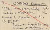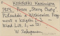 KOSIŃSKI Kazimierz 1924 Przez "Starą Chatę". Piłsudski a Witkiewicz. Fragment z książki [...].