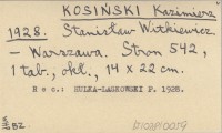 KOSIŃSKI Kazimierz 1928 Stanisław Witkiewicz.