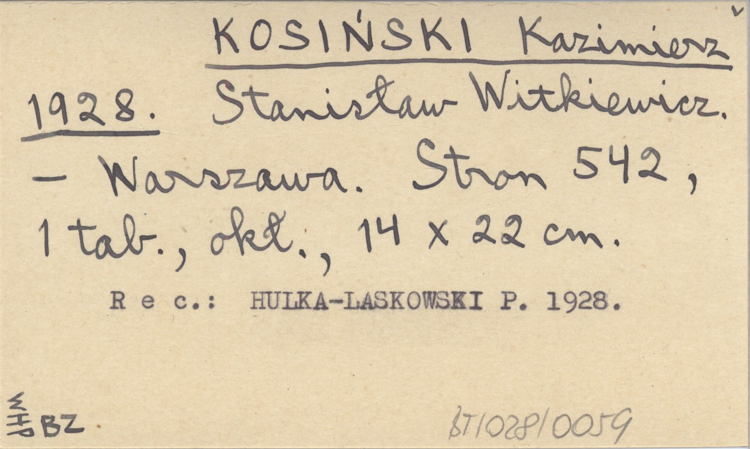 Warszawa , 542 s., 1 k. tabl., okł., 14x22 cm. REC: HULKA-LASKOWSKI P. 1928