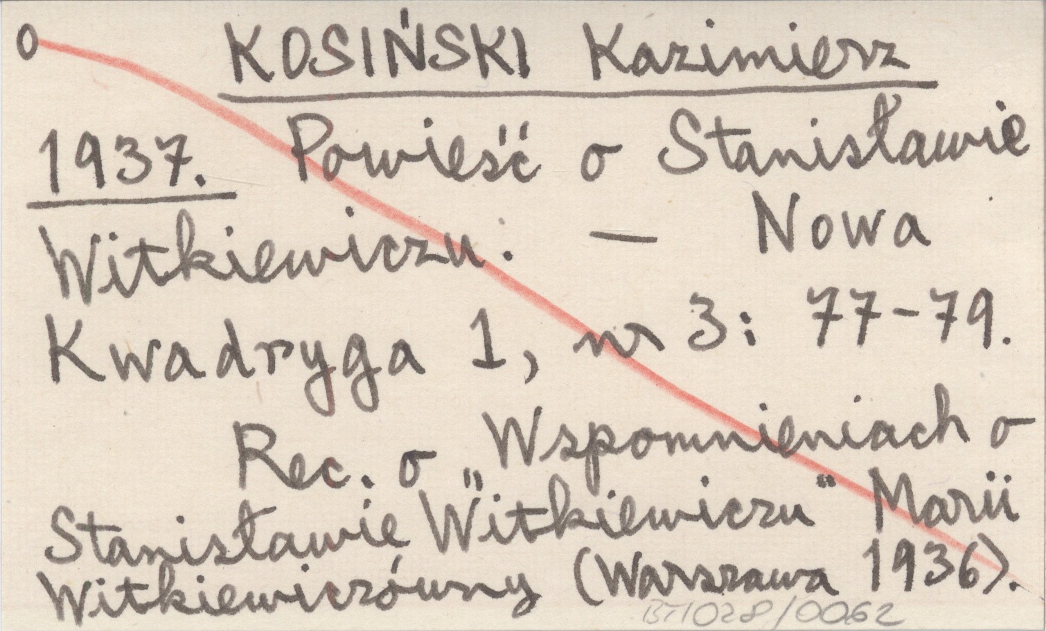 Nowa Kwadryga, 1, nr 3: 77-79. Rec. o "Wspomnieniach o Stanisławie Witkiewiczu" Marii Witkiewiczówny (Warszawa 1936).