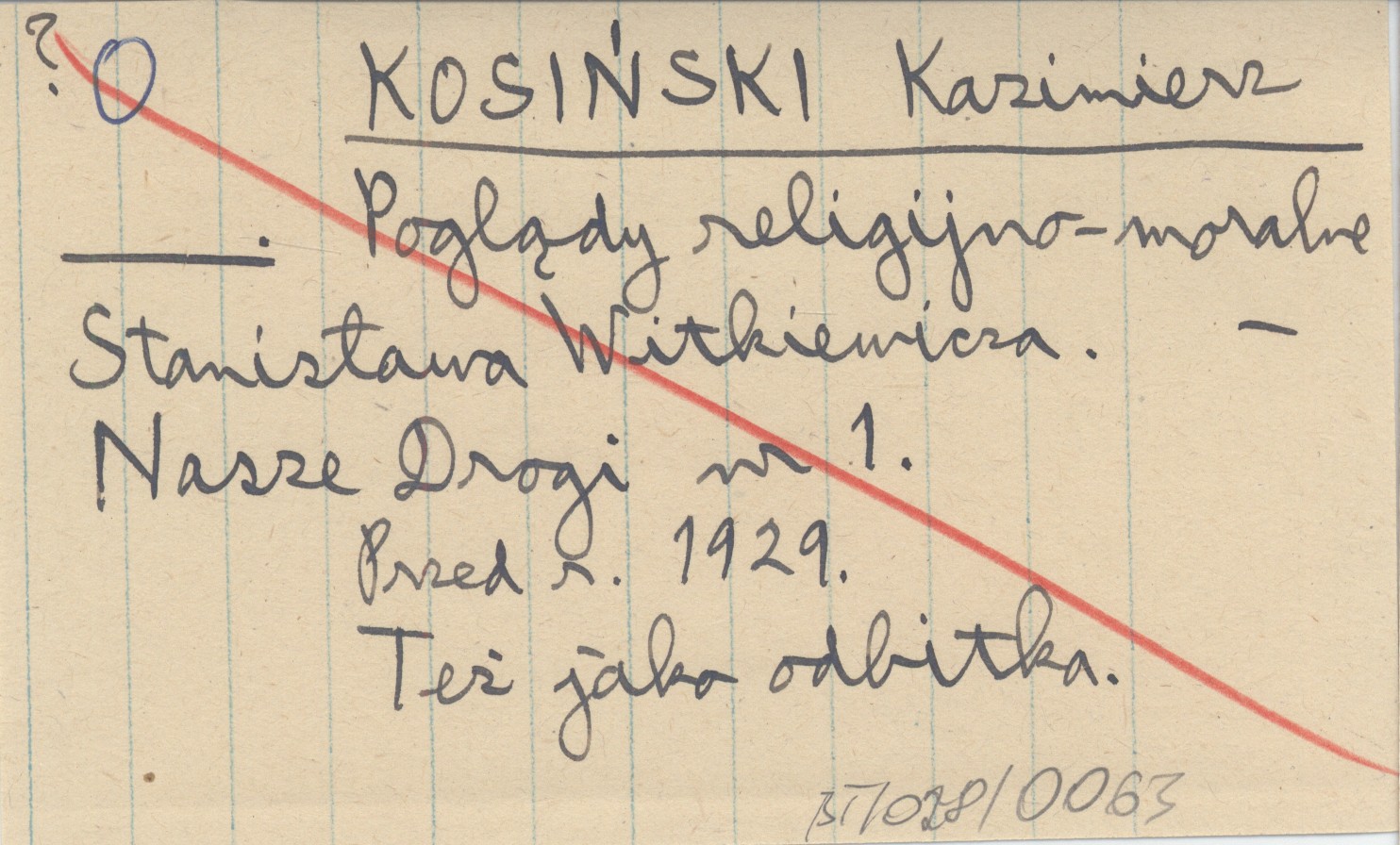 KOSIŃSKI Kazimierz przed 1929 Poglądy religijno-moralne Stanisława Witkiewicza.