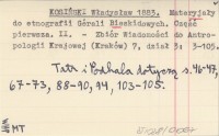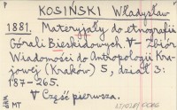 KOSIŃSKI Władysław 1883 Materyjały do etnografii Górali Bieskidowych. Część pierwsza. II.